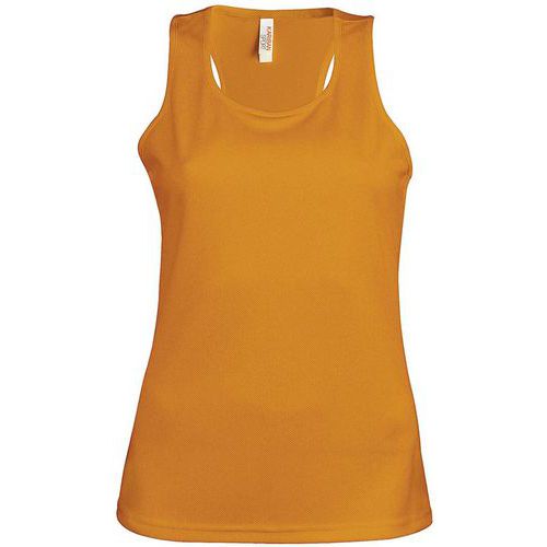 Débardeur féminin, de couleur orange, idéale pour la pratique de nombreuses activités sportives.