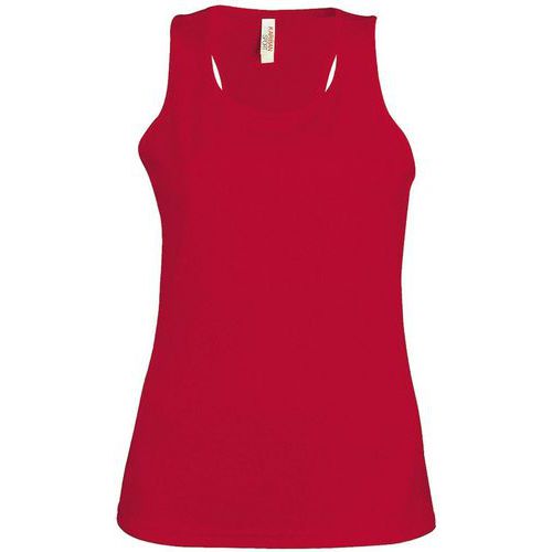 Débardeur féminin, de couleur rouge, idéale pour la pratique de nombreuses activités sportives.