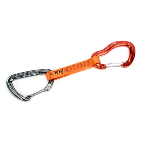 Dégaine complète formée de 2 mousquetons doigt fil reliés par une sangle express de 11 cm.