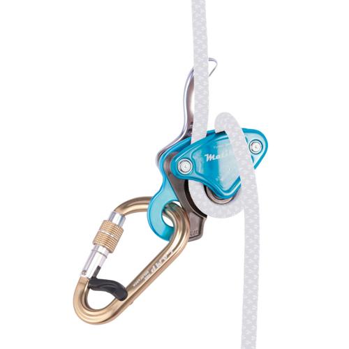 Il doit être utilisé uniquement avec des cordes à simple dynamiques de 8.6 à 10.2 mm de diamètre et avec un mousqueton HMS.