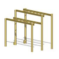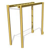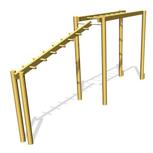 Pin traité autoclave classe IV Livré avec panneau indiquant les instructions d'utilisation Composé de rondins Ø 12,5 cm, rondins Ø 11 cm, montants échelle 6,8 x 12 cm, barreaux en iroko Ø 4 cm, tube inox Ø 3,4 cm.