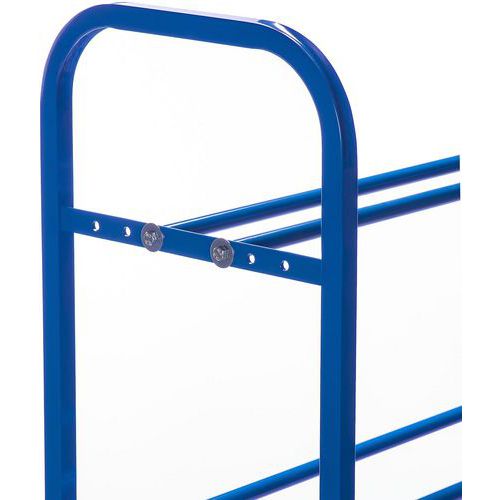 | Intitulé du produit | Etagère à ballons, Matériau: Acier, Hauteur: 145 cm, Largeur: 40 cm, Longueur: 150 cm, Coloris: Bleu |