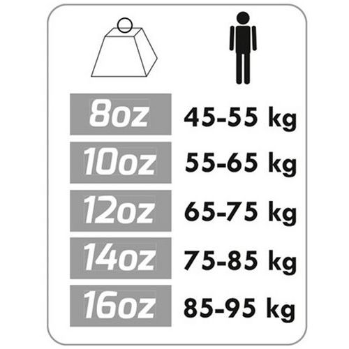 | Poids du gant en oz | 10 | 12 | 14 | 16 | 18 | 20 |