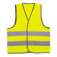 Gilet de sécurité enfant jaune avec une fermeture par bande auto-agrippante avec bandes de sécurité rétro-réfléchissantes cousues sur le gilet .