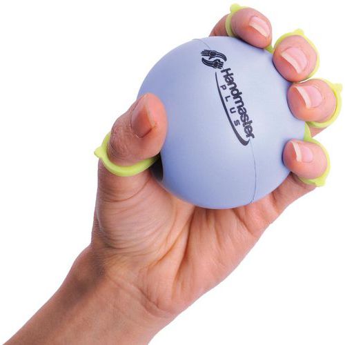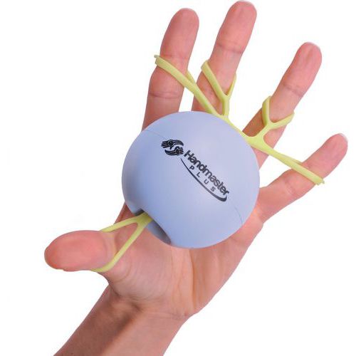 Handmaster rééducation de la main, cette balle est munie d'élastiques qui s'adaptent aux doigts permettant...
