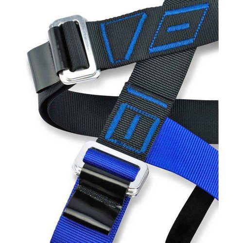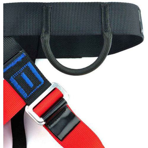 Harnais cuissard d'escalade entièrement réglable par des boucles rapides en alliage, pour plus de facilité d'utilisation en collectivités.