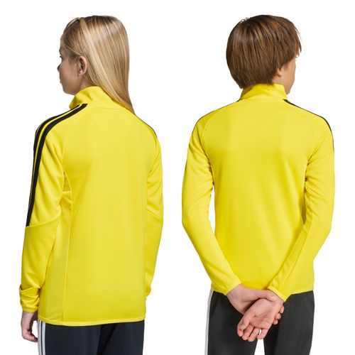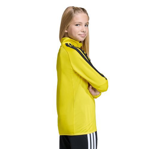 Haut d entraînement enfant Adidas Tiro 26 conçu pour échauffement et séances terrain Sweat training junior avec col montant et fermeture 1/2 zip frontale Demi-zip pratique pour ajuster la ventilation pendant l effort Matière respirante favorisant l évacuation efficace de la transpiration Coupe ajustée adaptée aux mouvements dynamiques des jeunes joueurs