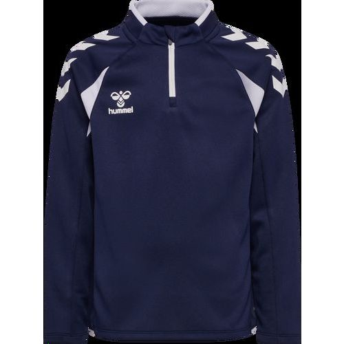 Haut manches longues Hummel Core 2.0 conçu pour entraînement et échauffement Sweat training sport adapté aux clubs et sports collectifs Col montant avec fermeture 1/2 zip pratique pour ajuster la ventilation Demi-zip frontal facilitant l enfilage et le retrait rapide Matière respirante favorisant l évacuation de la transpiration