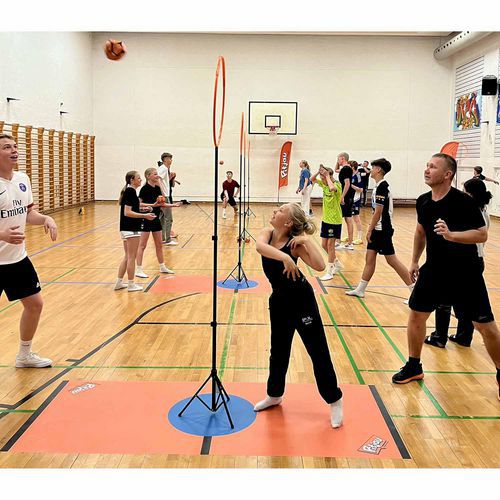- Frappez la balle cousue à la main avec la paume pour servir à travers l'anneau (Ø 60 cm)