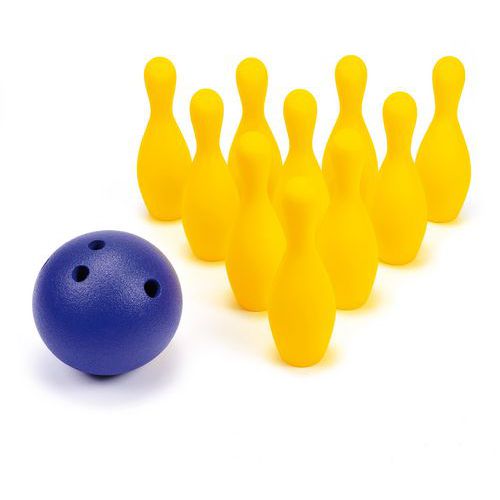 | Intitulé du produit | Jeu de bowling mousse supersoft, Hauteur: 30 cm, Nb de pièces: 11, Matériau: PVC, Coloris: Bleu/jaune |