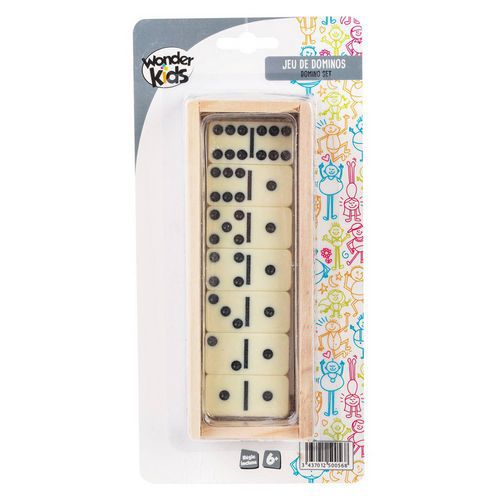 | Intitulé du produit | Dominos en bois avec plumier de rangement, Nb de pièces: 28, Matériau: Bois MFC, Nb de participants: 2 |