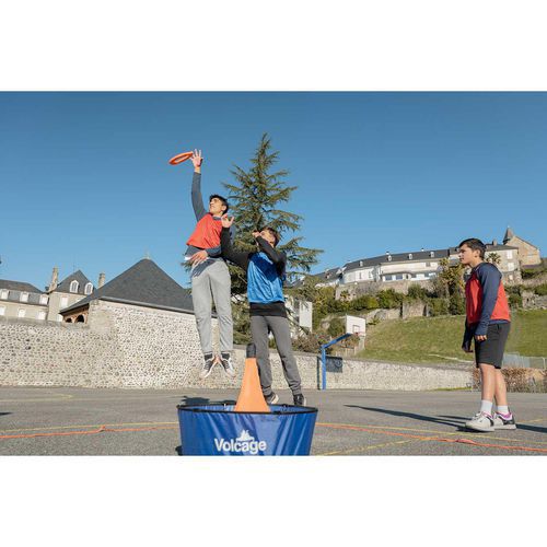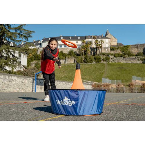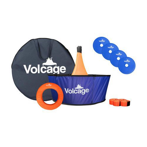 1 panier Volcage 2 anneaux à lancer Volcage Lignes de délimitation orange 4 bases bleues 1 sac de transport pratique 1 livret d instructions de montage et de règles du jeu
