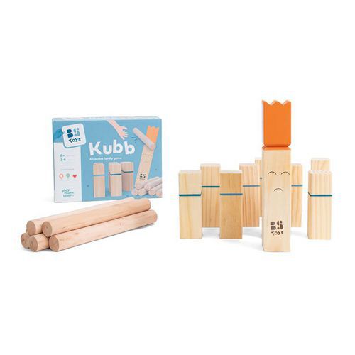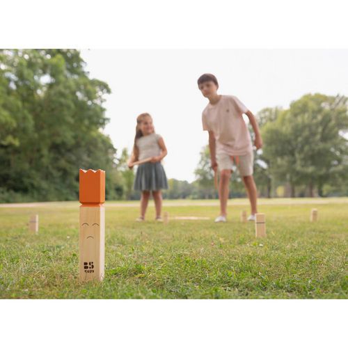 | Intitulé du produit | Jeu du Kubb, Nb de pièces: 21, Âge recommandé: 8 ans et +, Coloris: Beige Orange, Nb de participants: 6 |