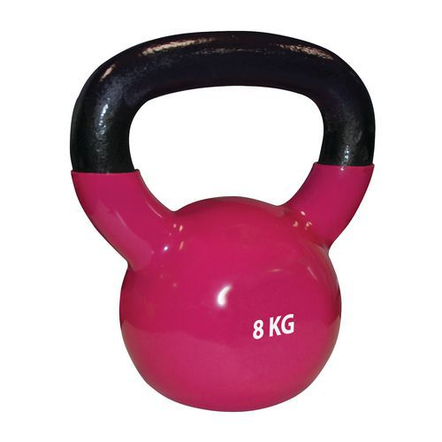 Kettelbell en fonte incassable. Protection assurée par revêtement vinyle. Chaque poids sa couleur, le poids est indiqué sur les poids. Très bonne prise en main, diamètre dela poignée : 3cm. Permet de varier les exercices (tirage, swing, soulevé de terre, abdos, farmer walker et pompes). Utilisable à domicile ou en cours collectifs.