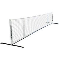 Il est équipé d une bande supérieure bien visible et de sangles de tension. Le filet est d une longueur totale de 6,4m (plus 10cm aux extrémités), mais est ajustable à des longueurs de 5,5m et 4,6m pour les surfaces de jeu plus petites.