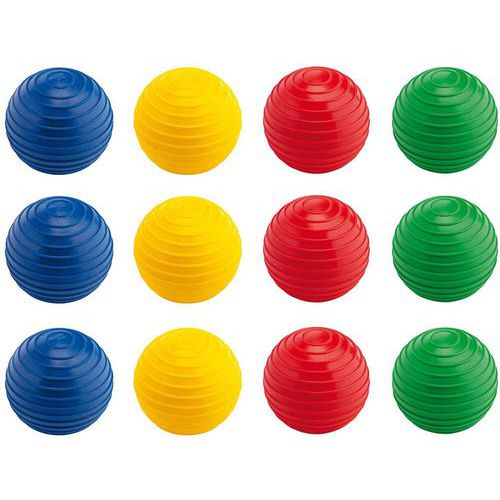 | Intitulé du produit | 12 Balles brevet sportif molle striée, Ø: 6.5 cm, Matériau: PVC, Poids: 80 g, Coloris: Assorti |