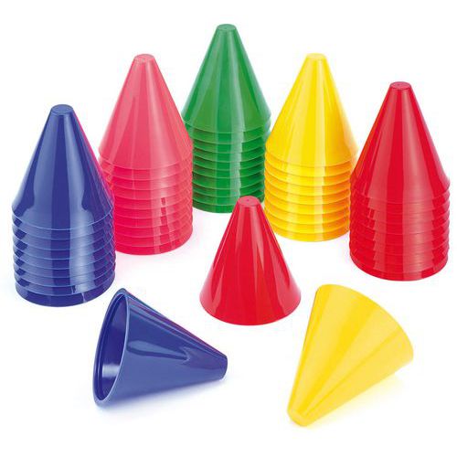 | Intitulé du produit | Lot 50 mini cônes de délimitation rigides, Matériau: PVC, Coloris: Assorti, Type de produit: Plots - Cônes |