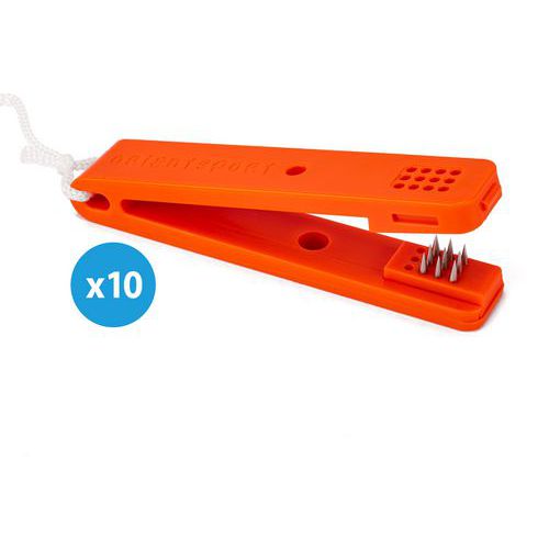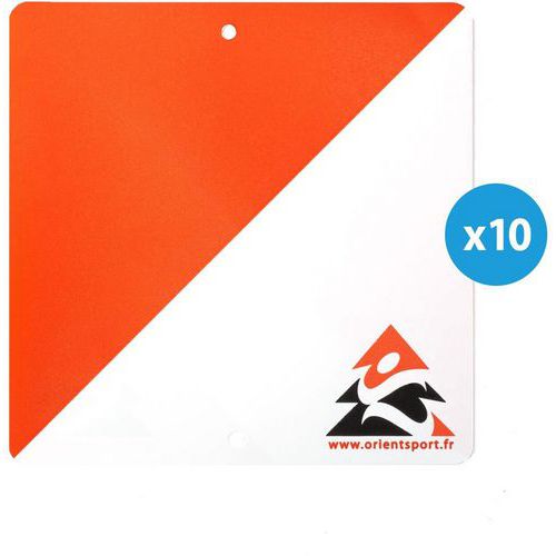 10 balises et 10 pinces oranges Orientsport, idéales pour la pratique de la course d'orientation.