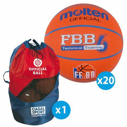 Lot de 20 ballons de basket Molten FFBB TRAINING + sac