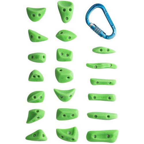 - Prises d'escalade à utiliser comme des pieds techniques ou des micros à visser sur des volumes.