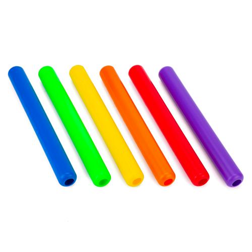 6 témoins relais en PVC, diamètre et longueur réglementaires pour simuler un vraie course de relais.