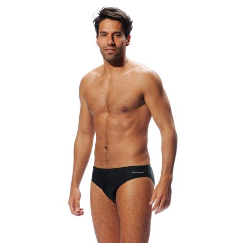 Maillot de bain homme en 80 % Polyamide - 20 % Elasthane avec surpiqures contrastantes, ceinture taille et logo sur le côté .