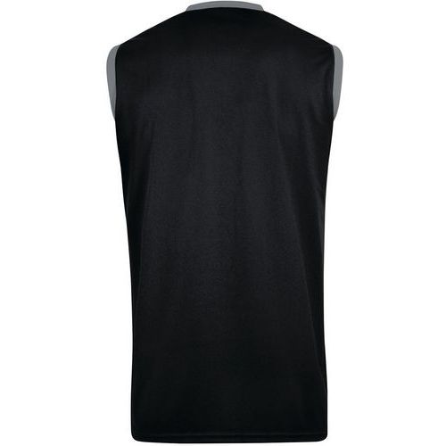 Débardeur de basket sans manche et col rond. Intérieur en couleur contrastante. Maillot réversible, de couleur noir/gris. 100 % polyester. Disponible en différentes tailles.