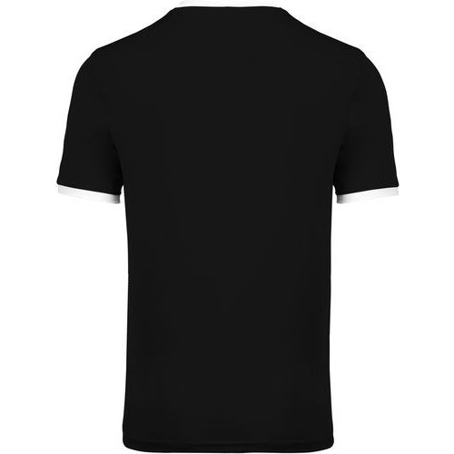 Maillot enfant Now One noir et blanc avec liserés de couleur blanche sur les bas des manches. Col V. Tissu fonctionnel et très résistant. 100% polyester. Disponible en différentes tailles.