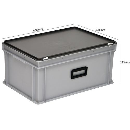 Poignées de transport fixées sur un grand côté pour une meilleur préhension du produit. Transportez votre contenu en toute sécurité : malette composé d’un bac RAKO (robuste et stable). Couvercle solidaire fermé par système de fermeture à ressorts. Identifiable par l’ajout d’un porte étiquette ou d’une pince étiquette. Polyvalent, possibilité d’ajouter des mousses de calage ainsi que des séparations (casiers modulaires). Dimensions Norme Europe. Malettes gerbables en pile.