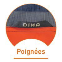 - Adaptable sur barres Dima, avec découpes pour piétement