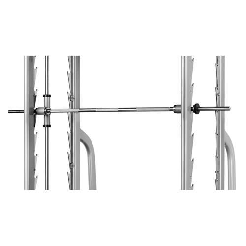 - Barre fixée sur le chariot de guidage. En ajoutant un banc vous ferez des développés couchés/inclinés/déclinés à votre convenance en toute sécurité.
