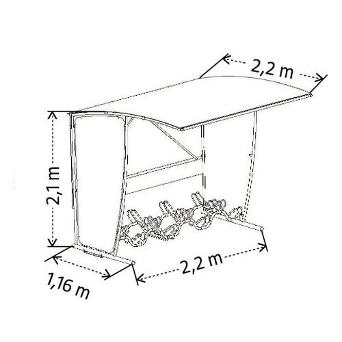 | Intitulé du produit | Abri cycles rectangulaire, Longueur hors tout: 2.20 m, Profondeur hors tout: 2.20 m |