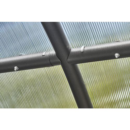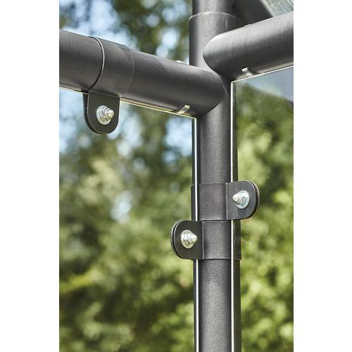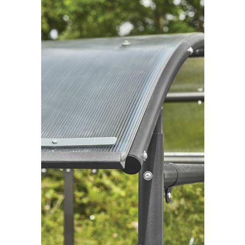 Abri avec pieds réglables en hauteur pour mise à niveau.