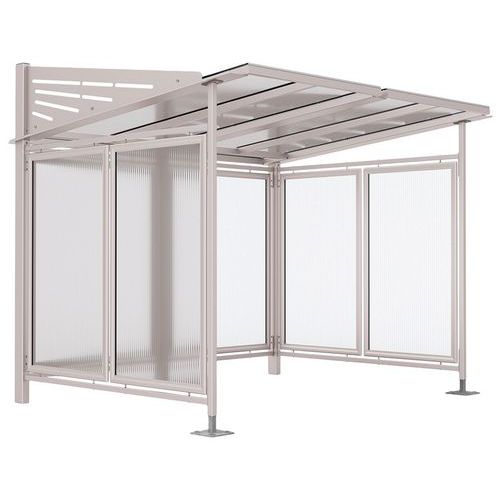 - Bardages fond et latéraux avec cadre alu et panneaux en polycarbonate alvéolaire épaisseur 10 mm, anti-UV.