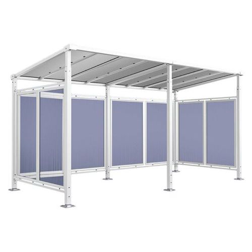 - Bardages de fond et latéraux : cadre profilé aluminium et vitrage en polycarbonate alvéolaire épaisseur 10 mm, anti-UV.