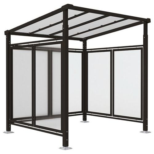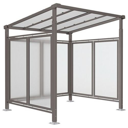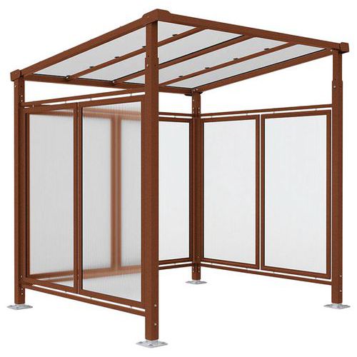 - Bardages de fond et latéraux : cadre profilé aluminium et vitrage en polycarbonate alvéolaire épaisseur 10 mm, anti-UV.