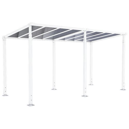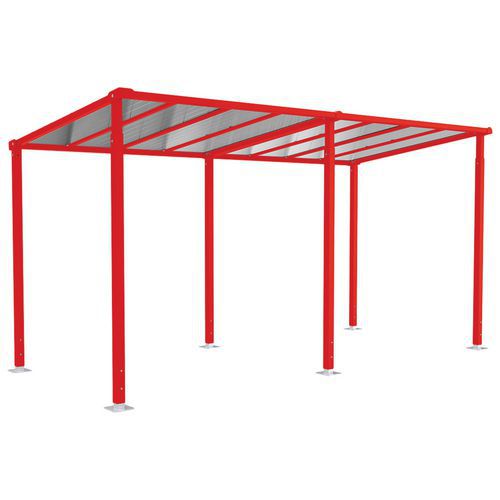 - Toiture traverse en tube acier 60 x 60 mm, panneaux en polycarbonate alvéolaire épaisseur10 mm traité anti-UV.