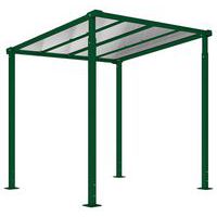 - Toiture traverse en tube acier 60 x 60 mm, panneaux en polycarbonate alvéolaire épaisseur10 mm traité anti-UV.