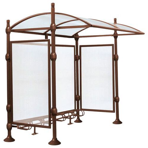 - Abri vélos Province initial avec poteaux en tube aluminium de Ø 76 mm, pommeau City.