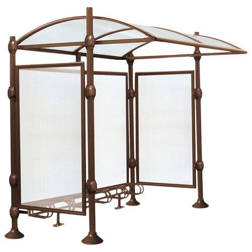 - Abri vélos Province initial avec poteaux en tube aluminium de Ø 76 mm, pommeau inox brossé.