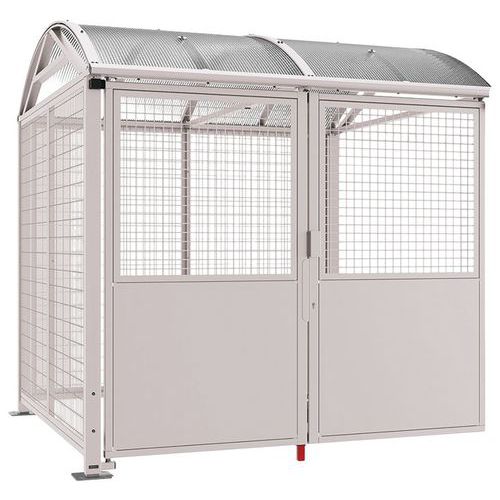 - Sécurisation de la double porte : partie haute en grillage carré fil de Ø 5 mm, partie basse en tôle épaisseur 1,5 mm.