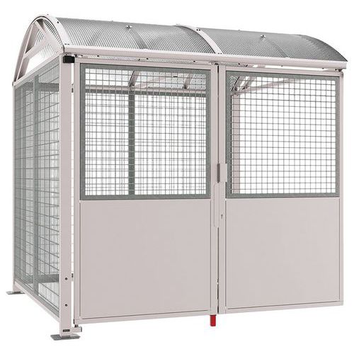 - Sécurisation de la double porte : partie haute en grillage carré fil de Ø 5 mm, partie basse en tôle épaisseur 1,5 mm.