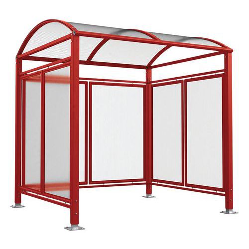 - Bardages fond et latéraux avec cadre profilé aluminium et vitrage en polycarbonate alvéolaire épaisseur 10 mm, anti-UV.