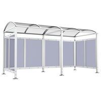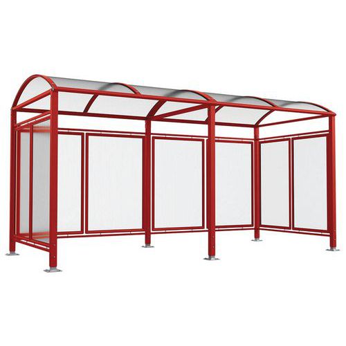 - Bardages fond et latéraux avec cadre profilé aluminium et vitrage en polycarbonate alvéolaire épaisseur 10 mm, anti-UV.