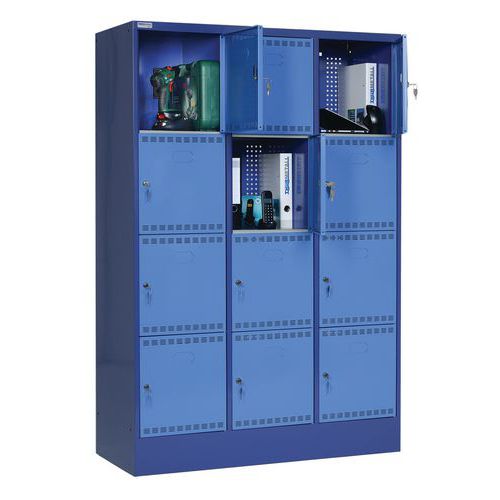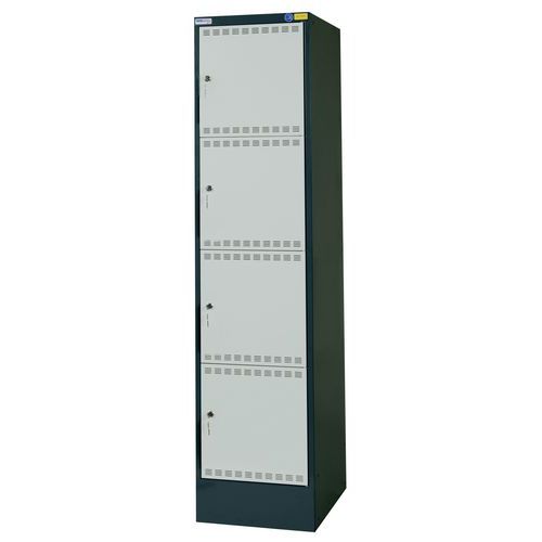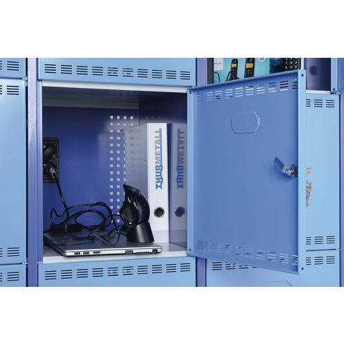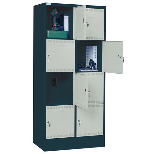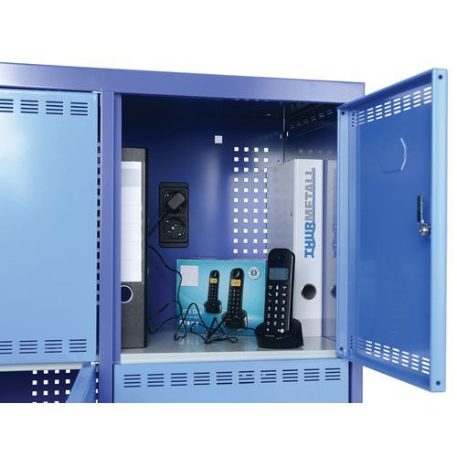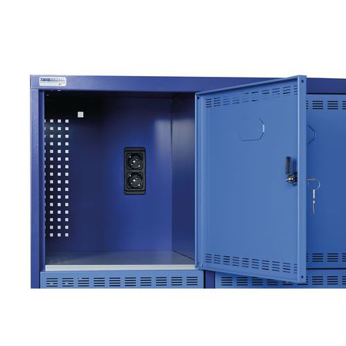 Armoire à casiers électriques équipés de 2 prises de courant 230 V. Pour stocker et recharger en même temps.
