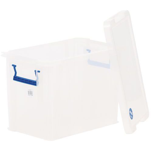 Bac de rangement solide et très stable. Pratique, le transport est facile grâce aux poignées. Reconnaissance rapide des objets à l'intérieur du bac grâce à a sa transparence.