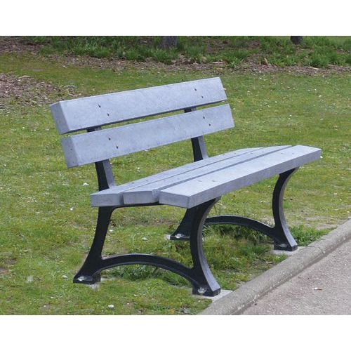 Plastique et fonte. Assise renforcée composée de lattes section 5 x 12 cm, angles chanfreinés. Pieds laqués noir. A fixer sur sol dur par scellement (4 goujons 12 x 120 mm fournis) sauf sur l’enrobé fixation chimique. Livré monté ou en Kit. Coloris noir disponible sur demande en version montée ou démontée. Coloris sable également disponible sur demande en version démontée.