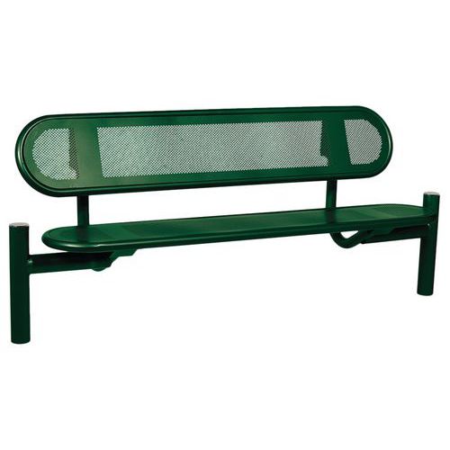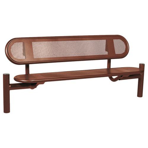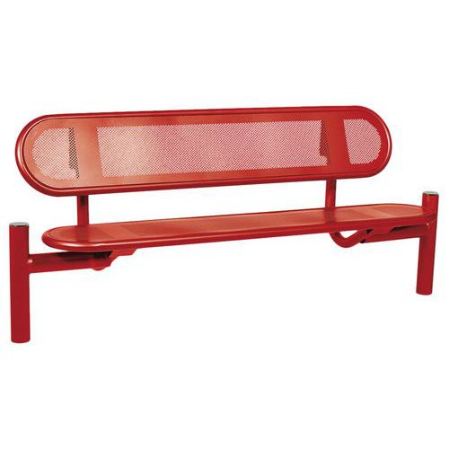 - Assise et dossier en tôle perforée 2 mm cerclés d’un tube acier Ø 38 mm.