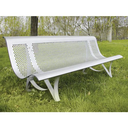 - Assise et dossier épaisseur 1,5 mm en tôle perforée pour l'écoulement des eaux pluviales et pieds profilés.