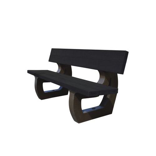 Banc Parc asise renforcée : Livré monté Assise renforcée composée de lattes de section 5 x 12 cm. A fixer sur sol dur par scellement (2 goujons 12 x 180 mm fournis) sauf sur l’enrobé, fixation chimique. Coloris noir disponible sur demande